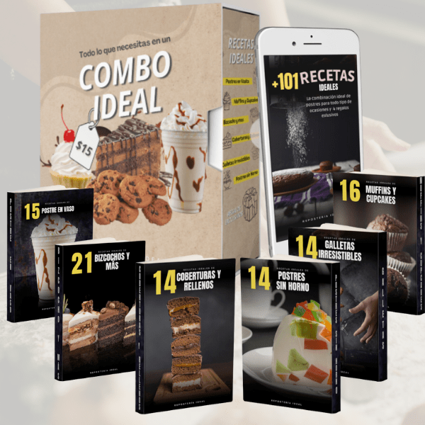 Explora el arte de la repostería con nuestro exclusivo Combo Ideal, que abarca seis recetarios diseñados para endulzar cualquier ocasión. Desde opciones sin horno hasta exquisitas coberturas, galletas crujientes, bizcochos esponjosos, postres en vaso y la diversidad de cupcakes y muffins, este conjunto te sumerge en un viaje culinario emocionante. Además si tu propósito con estos recetarios es emprender te damos la información y herramientas necesaria para crear tu negocio. Cada recetario presenta las mejores recetas paso a paso, cuidadosamente seleccionadas para garantizar resultados espectaculares. Desde la preparación sin complicaciones hasta los toques finales, las instrucciones detalladas aseguran que incluso los principiantes logren resultados sorprendentes.